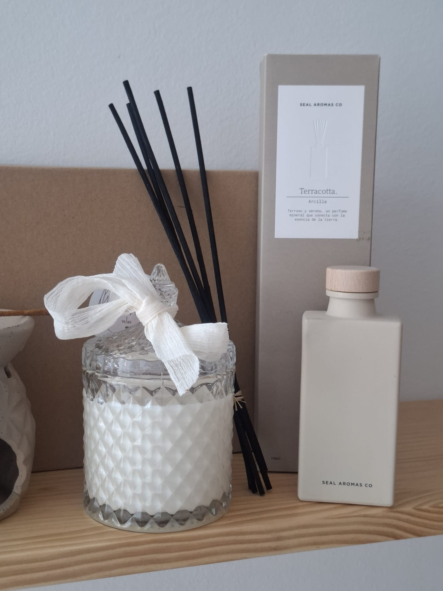 El mikado con esencia de arcilla sorprende por su fragancia única: limpia, suave, ligeramente terrosa y profundamente acogedora. Es ese aroma que cuando entras en una casa dices… “qué bien huele aquí”.